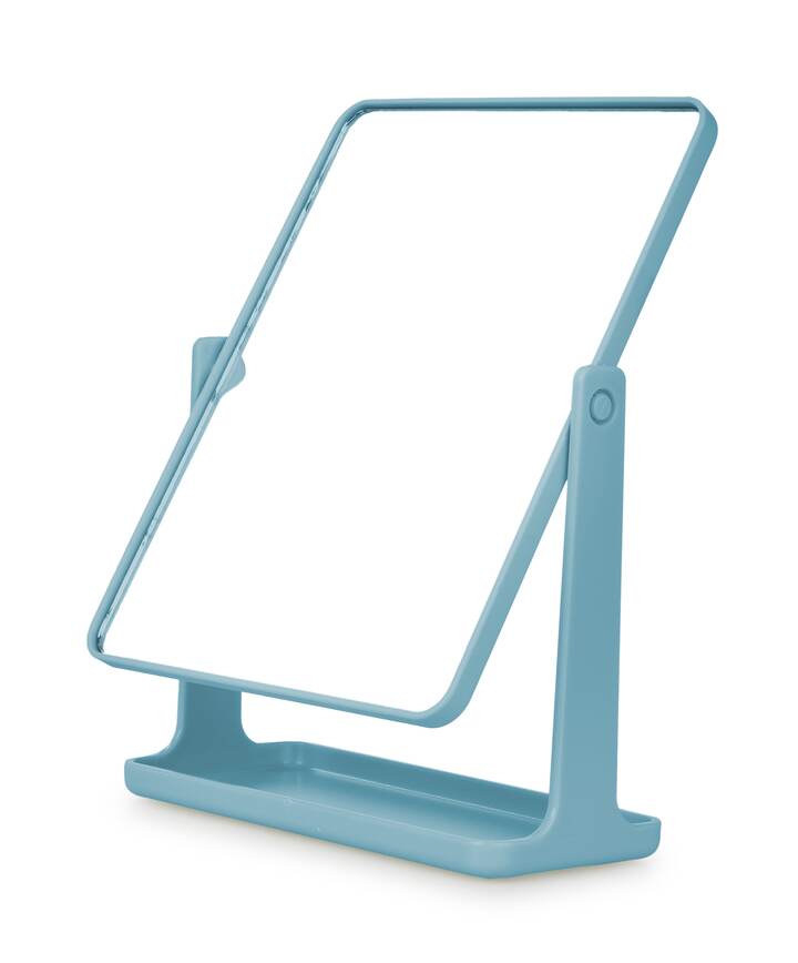 A BEAUTY kozmetikai tükör pasztell kék színben 360°-os forgatható mechanizmussal és stabil állványjal rendelkezik. Praktikus és stílusos kiegészítő, amely kényelmessé teszi a sminkelést, borotválkozást és a mindennapi bőrápolást.
