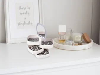 - 4 forgatható szint – egyszerű ékszer- és kiegészítő szervezés.