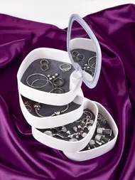 💎 Az ékszereknek saját királyságra van szükségük. A BEAUTY ékszertartó 4 praktikus szintet kínál, ahol áttekinthetően tárolhatod a gyűrűket, fülbevalókat, karkötőket és kiegészítőket. A párnázás megvédi az ékszereket a karcolásoktól és portól, míg az elegáns forgatható design lehetővé teszi, hogy mindent kéznél tarts. A fedélen pedig egy ügyes tükör található, így azonnal ki tudod próbálni a fülbevalókat – semmi várakozás, csak tiszta öröm.