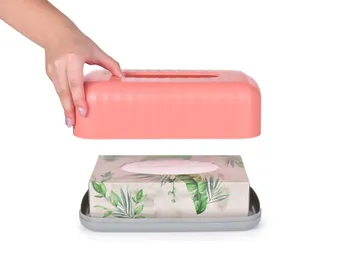Elegáns műanyag BEAUTY doboz papírzsebkendők számára, levehető aljjal. Praktikus kiegészítő a fürdőszobába, hálószobába és a nappaliba. Kéznél tartja a zsebkendőket és stílusosan illeszkedik a belső térbe.