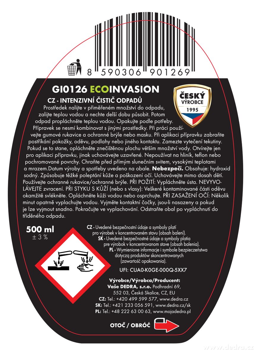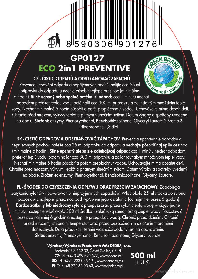 Előnyös akciócsomag a szagtalan tiszta lefolyókért. Tartalmazza: 1 x ökológiai intenzív lefolyótisztító, ECO INVASION, 500 ml + 1 x ökológiai szagelfogó és lefolyómegelőző tisztító, ECO PREVENTIVE 2in1, 500 ml