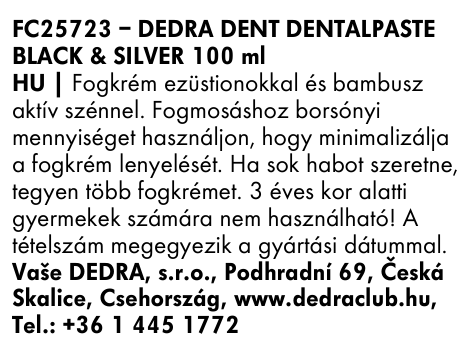DEDRA DENT® BLACK & SILVER – természetes fogkrém ezüstionokkal és bambusz szeneddel, antibakteriális védelemért, kíméletes fehérítésért és friss leheletért SLS, fluorid és kémiai tartósítószerek nélkül.