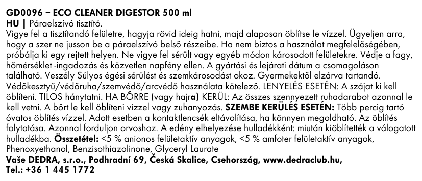 TISZTÍTÓ DIGESZTOR | Páraelszívók és szagelszívók tisztítója | kímélő összetevők | 500 ml