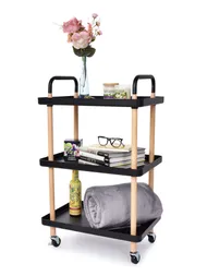 TROLLEY | gördíthető 3 szintes kocsi | multifunkcionális, kerekeken álló téglalap alakú polc, magassága 86 cm | fekete