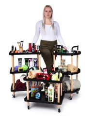 TROLLEY | 3 szintes gördíthető kocsi | multifunkcionális kerek állvány kerekeken | magasság 86 cm | fekete