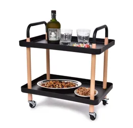 TROLLEY | kerekes 2 szintes mobil kocsi | multifunkcionális polc kerekeken | fekete