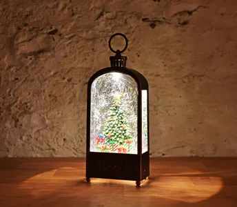 KARÁCSONYI FÉNY | világító LED lámpás hóeséssel és zenével | 33 cm | 8 karácsonyi dalt játszik