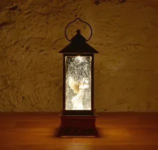 ANGYALI REMÉNY | LED lámpás, lebegő csillámokkal, angyallal és melódiákkal | magassága 31 cm