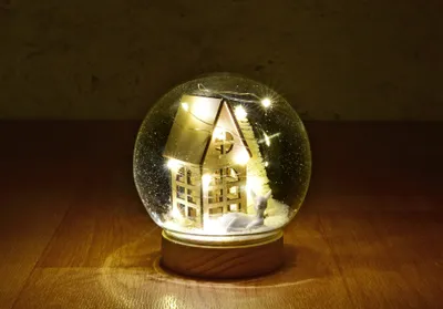 TÉLI HÁZIKÓ | világító LED üveg gömb jelenettel | Ø 11 cm