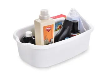 Praktikus fehér VODNESÚKLID tartó, 42 cm hosszú, stabil fogantyúval a könnyű szállításhoz. Rendezett módon tartja a tisztítószereket, rongyokat és szerszámokat. Strapabíró műanyag, okos dizájn és kényelmes tárolás.