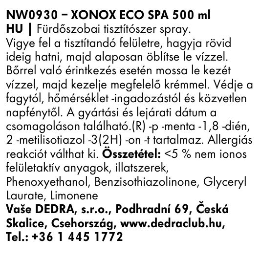 Extra erős tisztítószer XONOX SPA a tökéletes társ mindazok számára, akik tisztán és ragyogóan szeretnék tartani a fürdőszobájukat erőfeszítés nélkül. ECO összetevője biológiailag lebomló felületaktív anyagokkal óvja a természetet és egyúttal kiváló tisztítási teljesítményt nyújt.