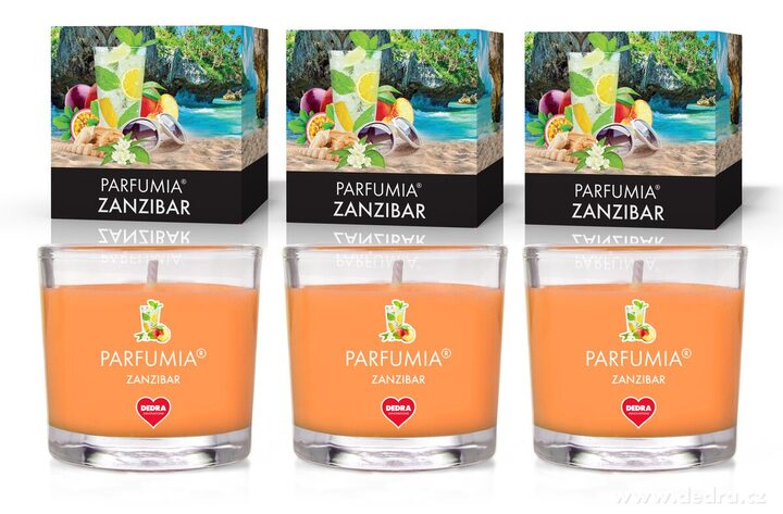 A készlet tartalmaz: 3 x 55 ml szójaviaszos EKO illatgyertya PARFUMIA®, ZANZIBAR.