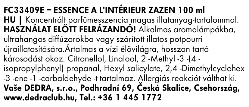 ZAZEN | illóolaj aroma lámpákhoz és diffúzorokhoz | PARFUMIA® BELTÉRI ESSENCIA | 100 ml
