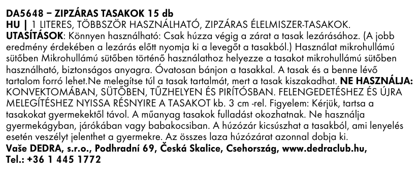 15 db ZIPOSÁČKY® ÉTELTARTÓ ZSÁK ZIPZÁRRAL, amelyek légmentesen záródnak